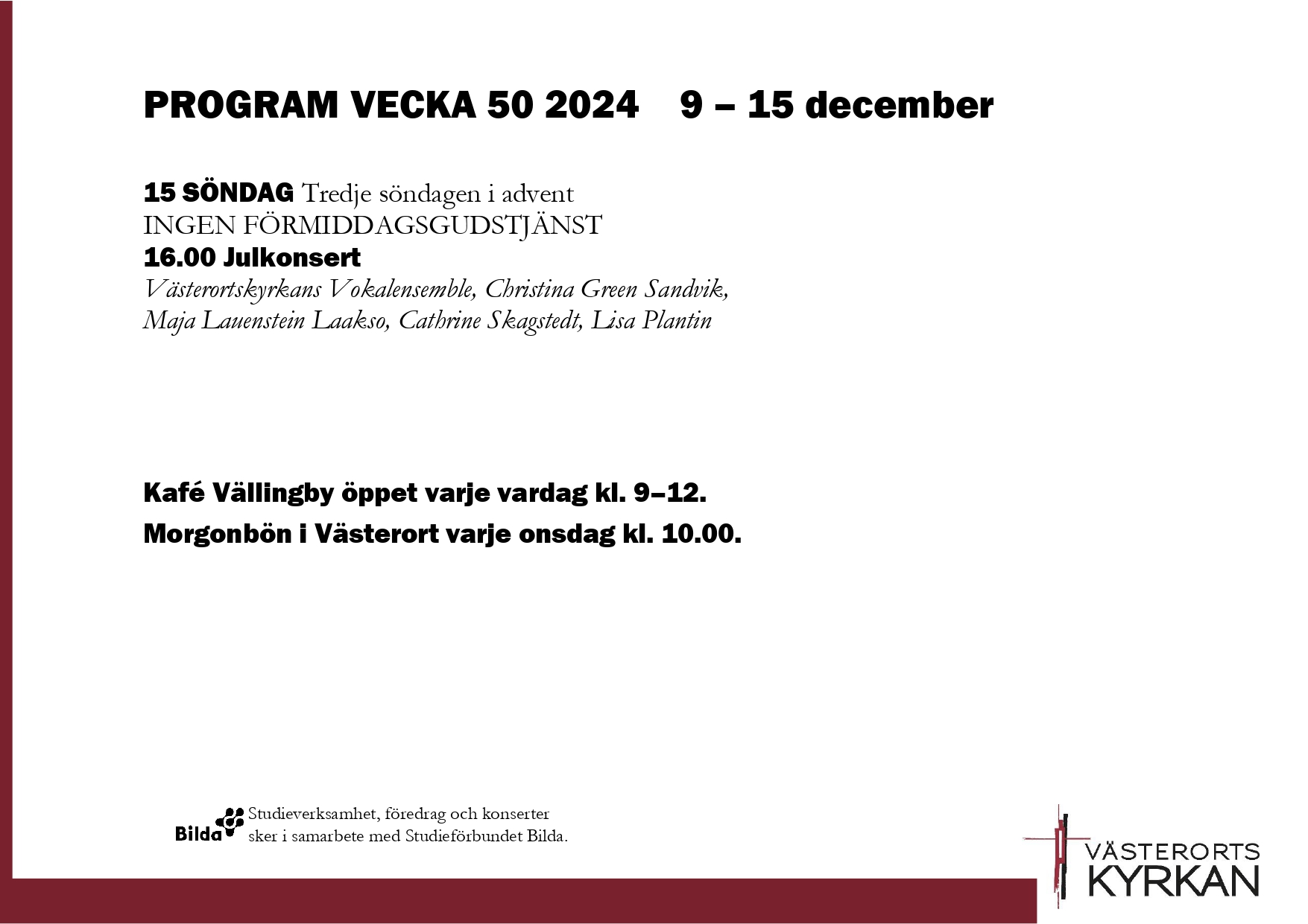 Julmarknad i Västerortskyrkan 7 december kl. 11-15