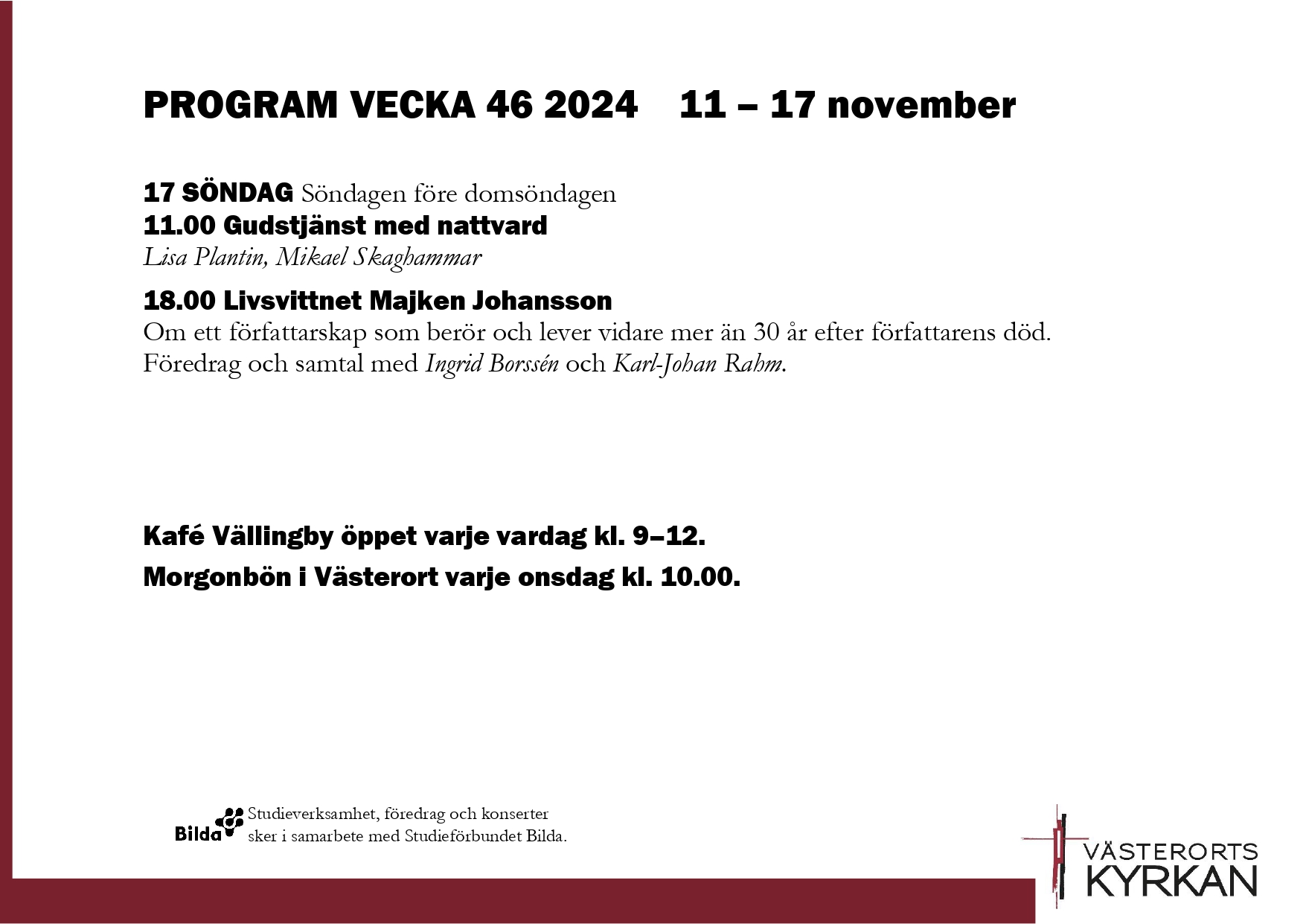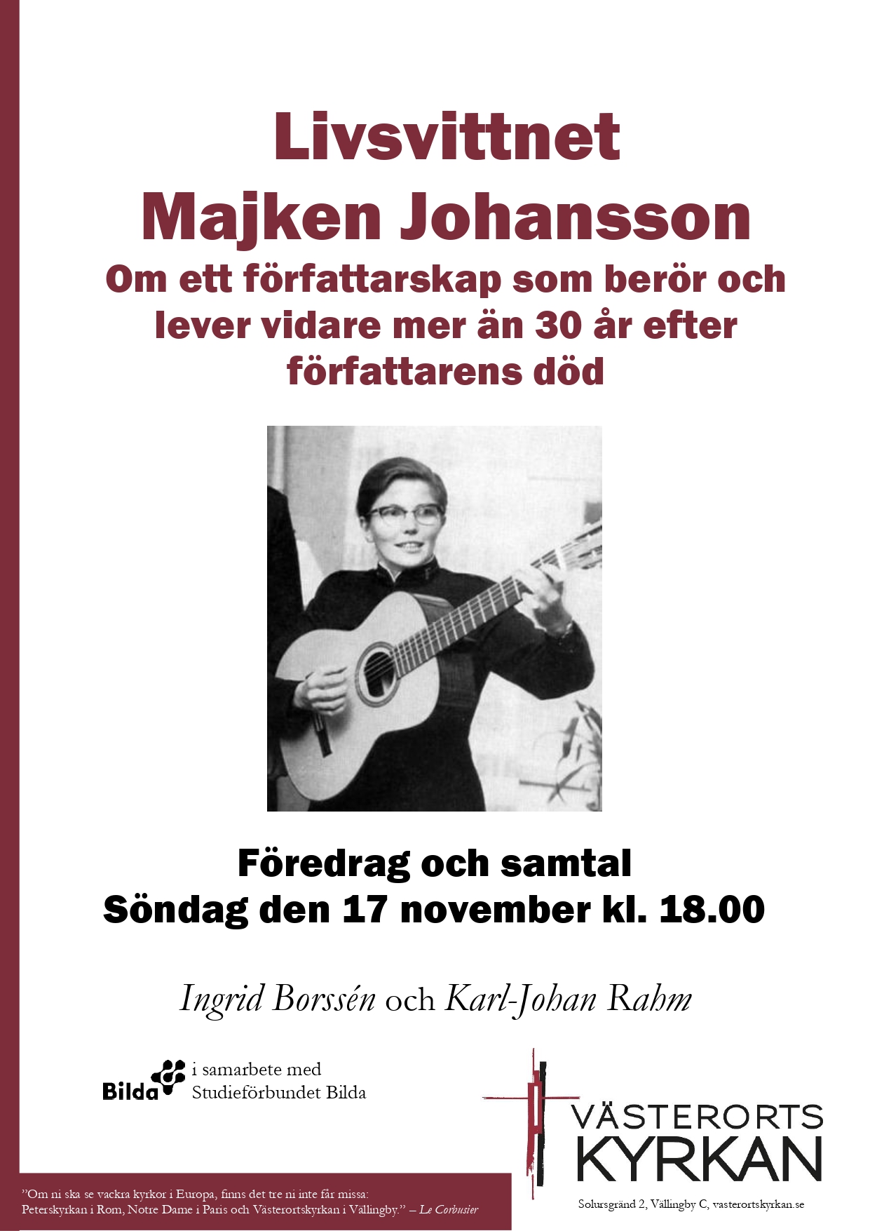 Majken Johansson – föredrag och samtal 17 nov kl 18