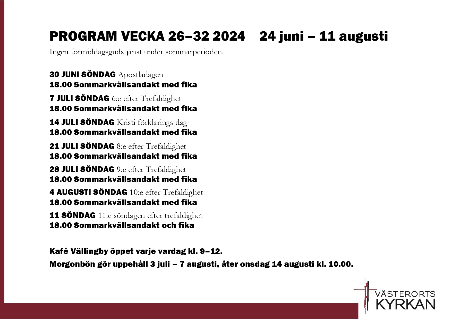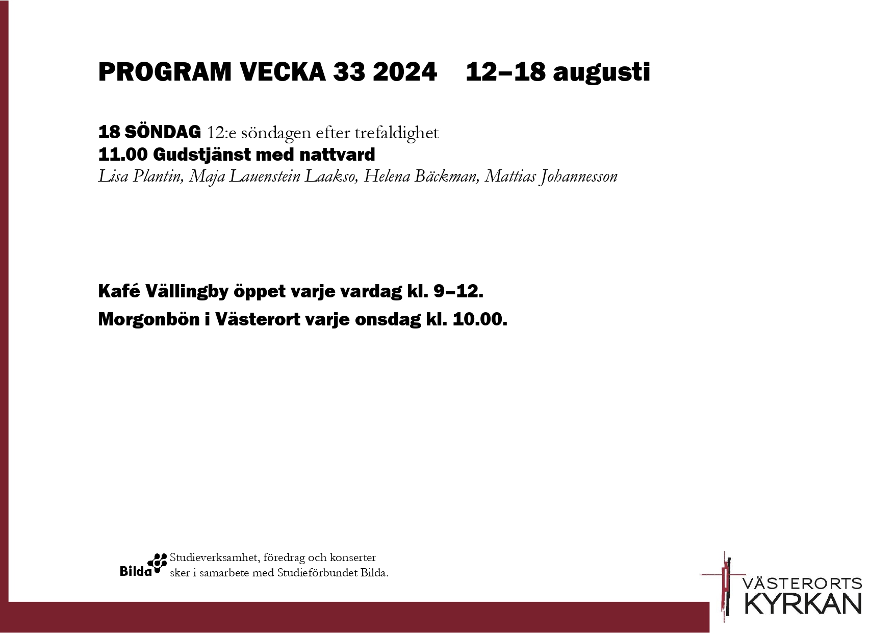 Det här händer i Västerortskyrkan vecka 33