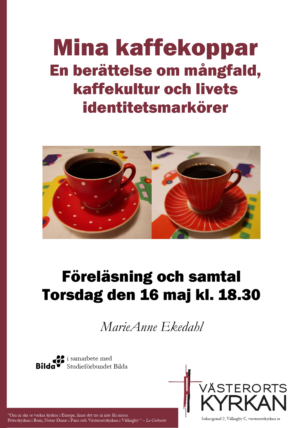 Mina kaffekoppar – föreläsning och samtal med MarieAnne Ekedahl 16 maj kl. 18.30