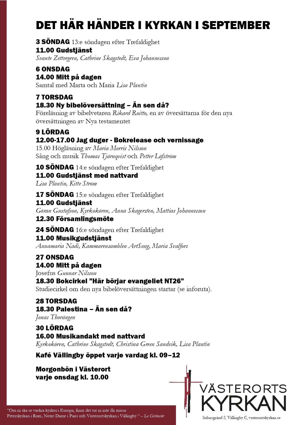 Vid frågor om kören, hör gärna av dig till diakon@vasterortskyrkan.se
