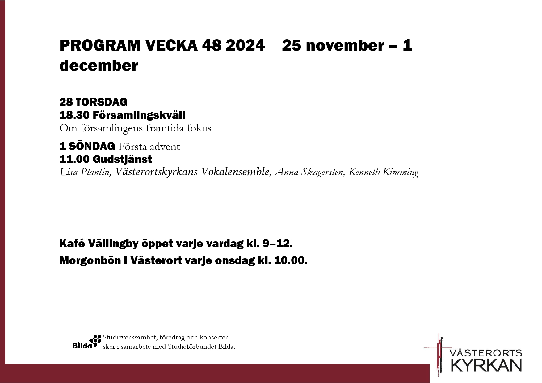 Julmarknad i Västerortskyrkan 7 december kl. 11-15