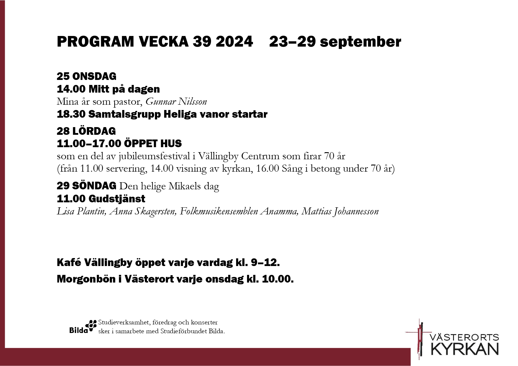 Det här händer i Västerortskyrkan vecka 39