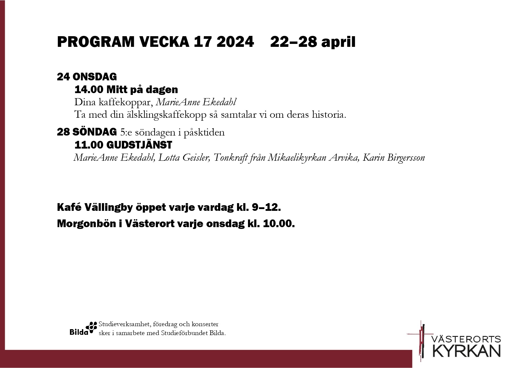 Mina kaffekoppar – föreläsning och samtal med MarieAnne Ekedahl 16 maj kl. 18.30