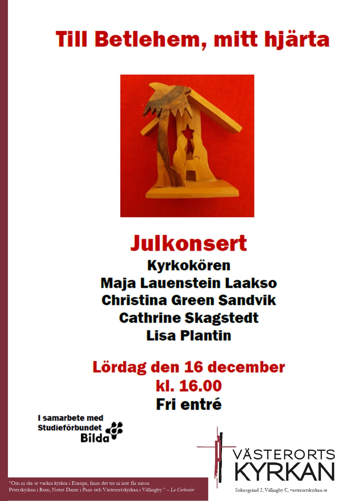 Julkonsert 16 december kl. 16