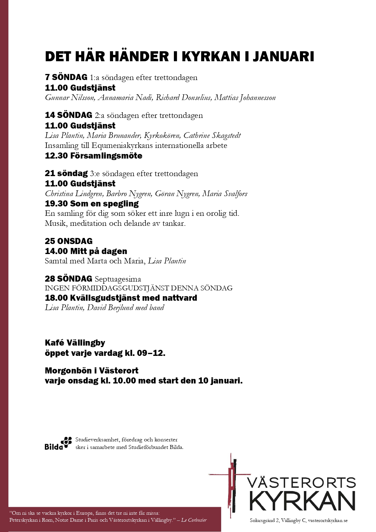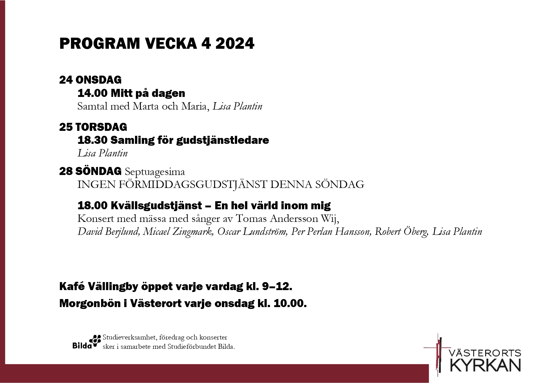 Det här händer i Västerortskyrkan vecka 4