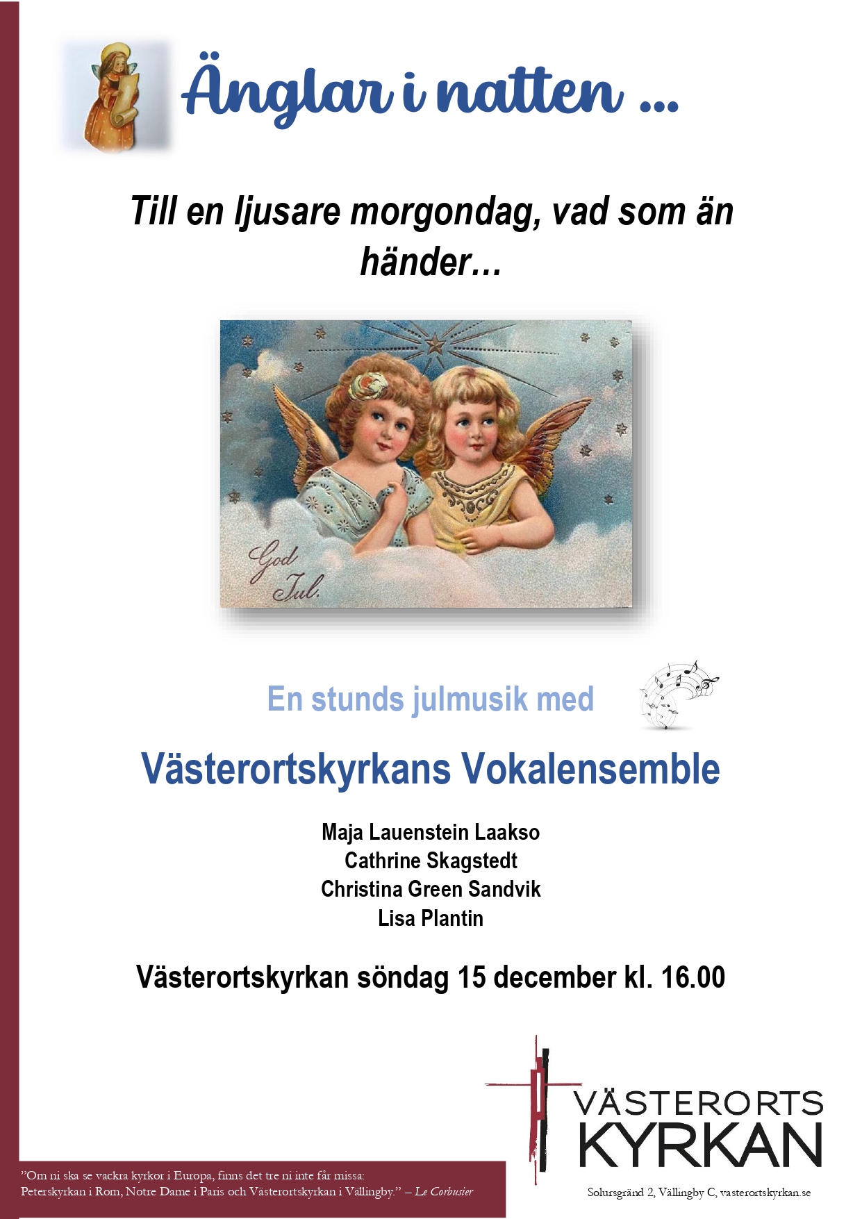 Julmusik i Västerortskyrkan 15 december kl 16